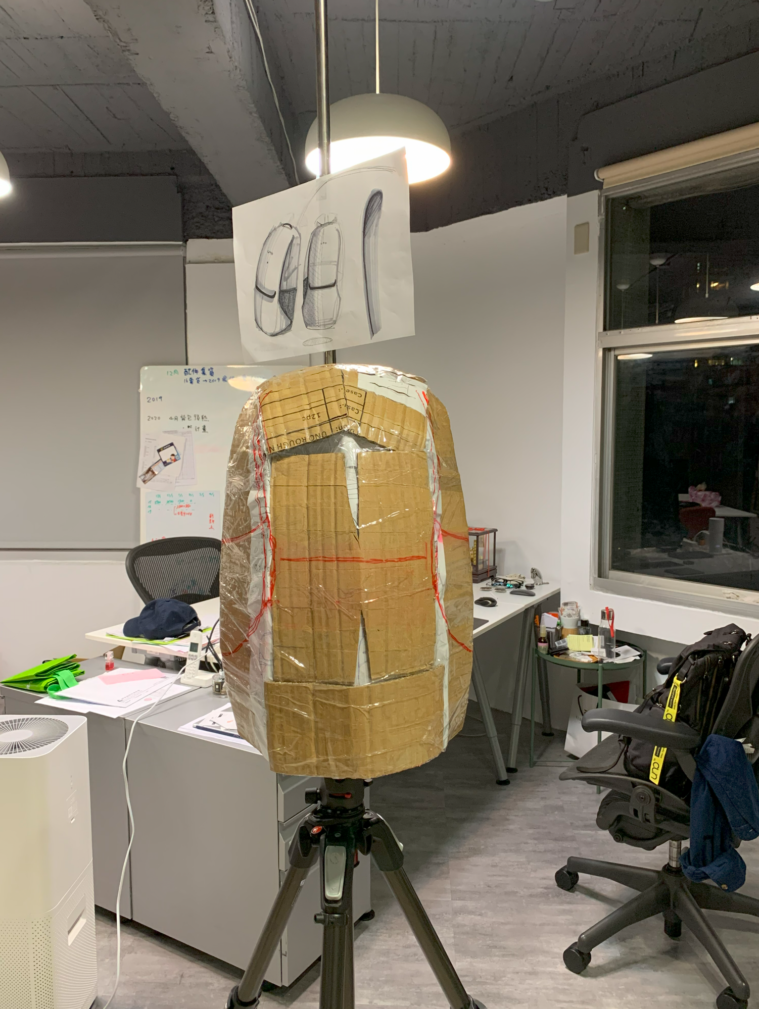 包體的形狀與拉鍊做動順暢度息息相關,先用紙板做出最合適包的包體;最後再用紙板打出最終的版型。